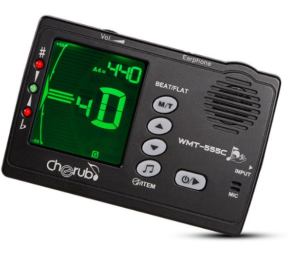 WMT-555C Метроном/тюнер с подсветкой. Тюнер Е1-А6 (C, F, bB. bE), Метроном: 30-230уд/мин Cherub - Электропитание 3V - Размер: 98 мм (Длина) 64 мм (Ширина) 15 мм (Высота) - Вес: 65г (вес не включая батарейки) - Цвет: Серебристый, черный Тюнер: Диапазон настройки: E1(41.2Hz)?A6(1760Hz) Ключи настройки:C, F, ?B, ?E А4 калибрация: 435 --- 445Hz Метроном: Темп: 30---230BPM Доли: -/4(0) 1/4 2/4 3/4 4/4 3/8 6/8 Диапазон темпа: Largo…..40—60 Larghetto..60-66 Adagio….66—76 Andante...76-108 Moderato…108—120 Allegro……120—168 Presto…….168—200 Prestissimo…200-208